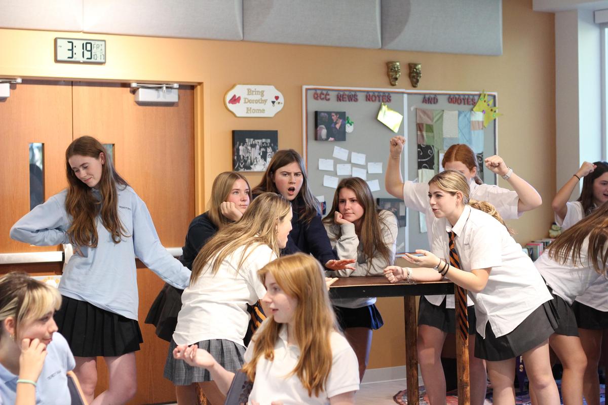 Director and faculty member Ellen Phillips shared her enthusiasm for the show, saying, “It’s an ode to friendship, it’s an ode to theater. The girls are doing a great job; they are doing British accents flawlessly. They’re even doing a little bit of Shakespeare without doing a full-on Shakespearean production – they’re getting a taste of it. It’s fascinating because it’s tied to history, and that’s my favorite part.”