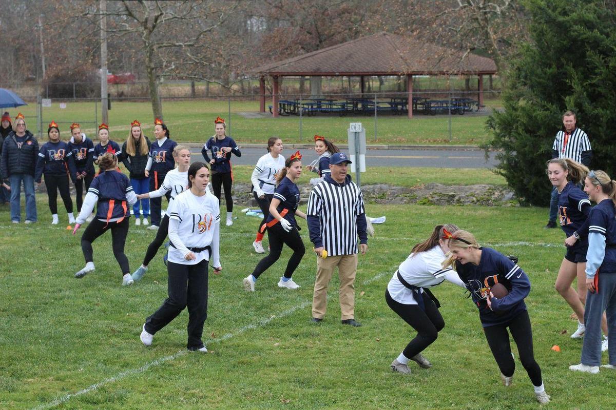 This school year, the blue team was victorious in the championship game. Senior Anna Martin elaborated on the importance of the tournament to her saying, “The flag football game is my favorite tradition. I love how it links everyone's shared competitiveness–no matter what sport we play! All friendships were put aside for the sake of competition, but in the end, we all are able to laugh about it and congratulate each other.”